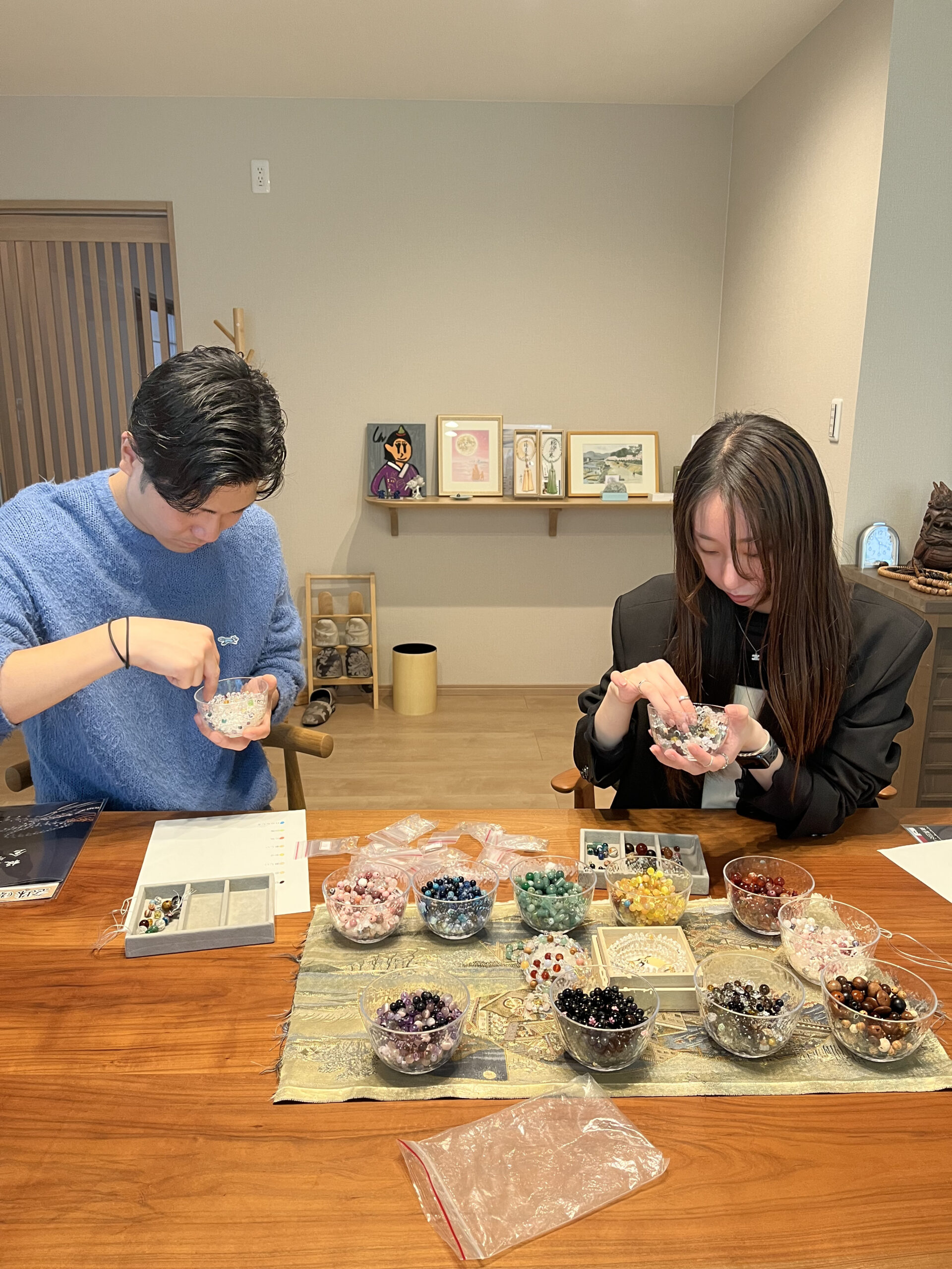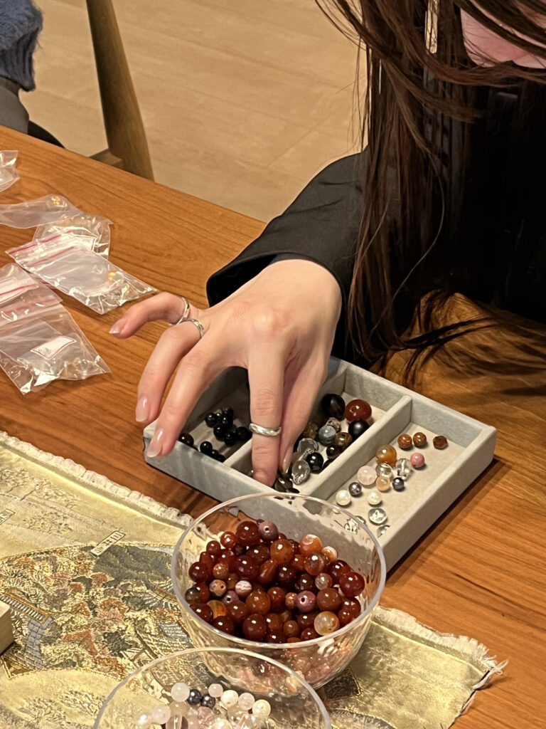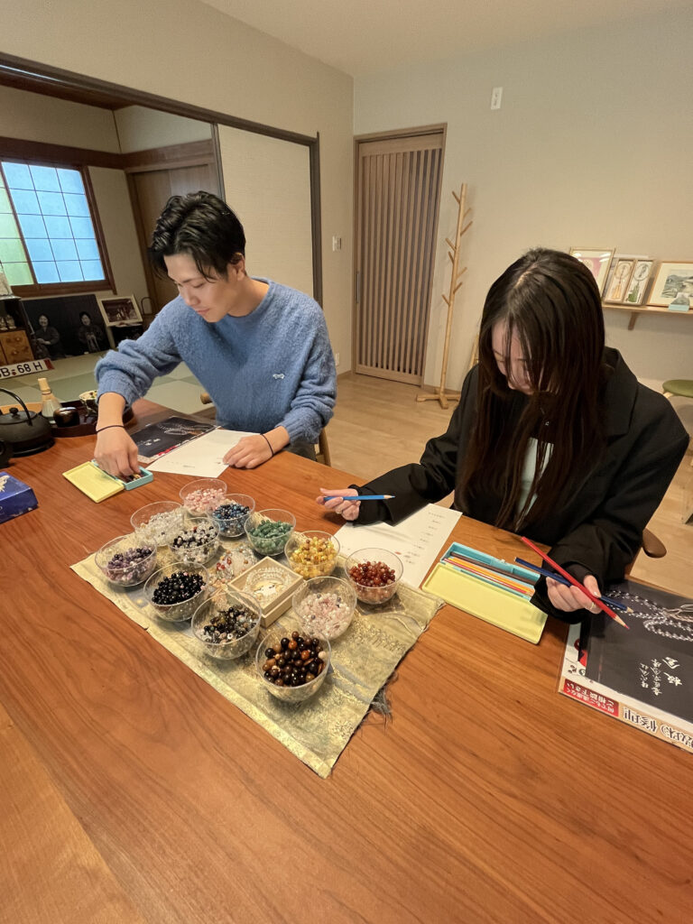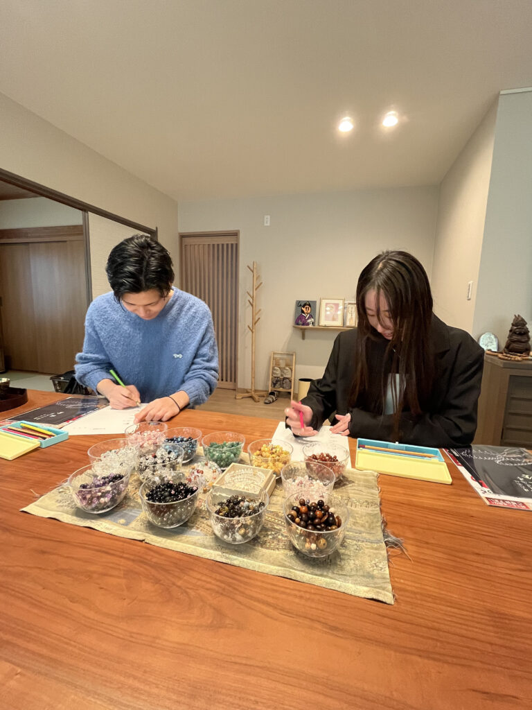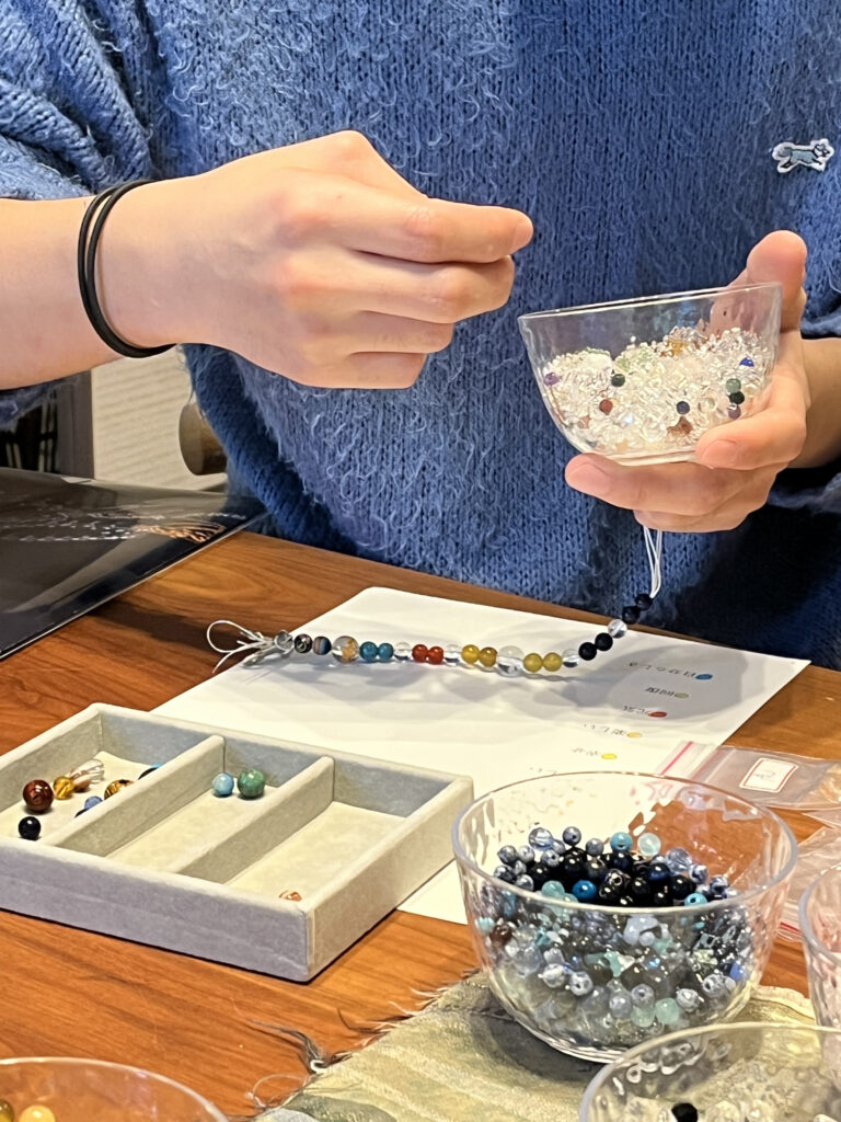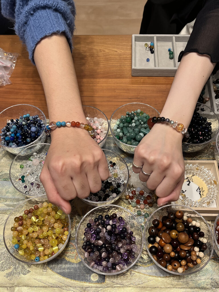 石の色やデザインを選びながら、あなただけの特別なお守り念珠を手作りできます✨