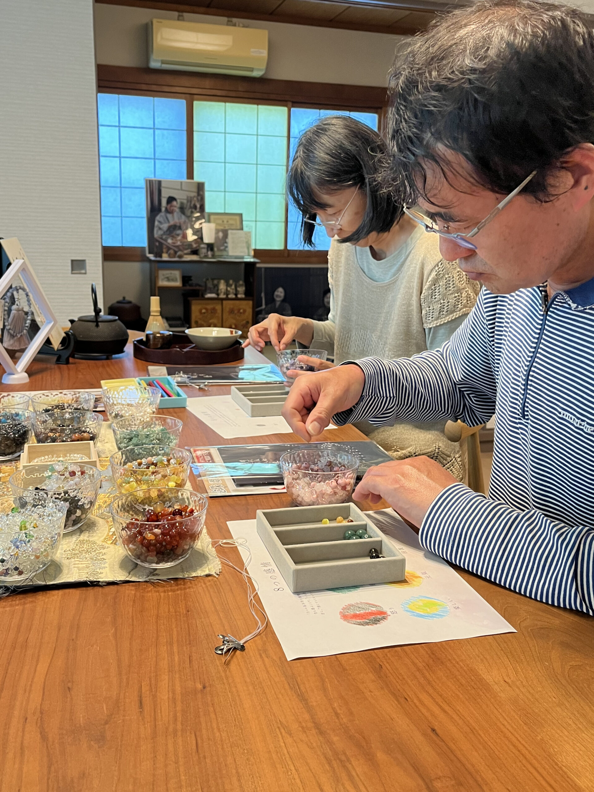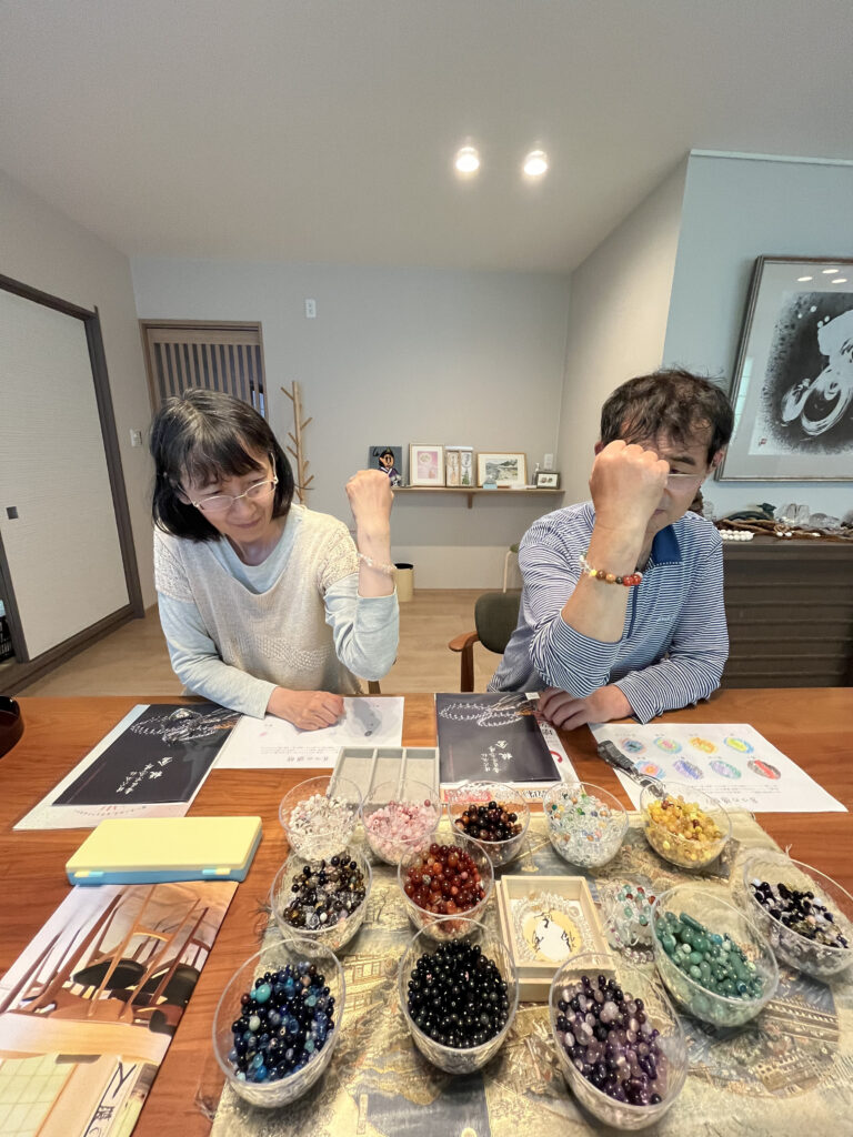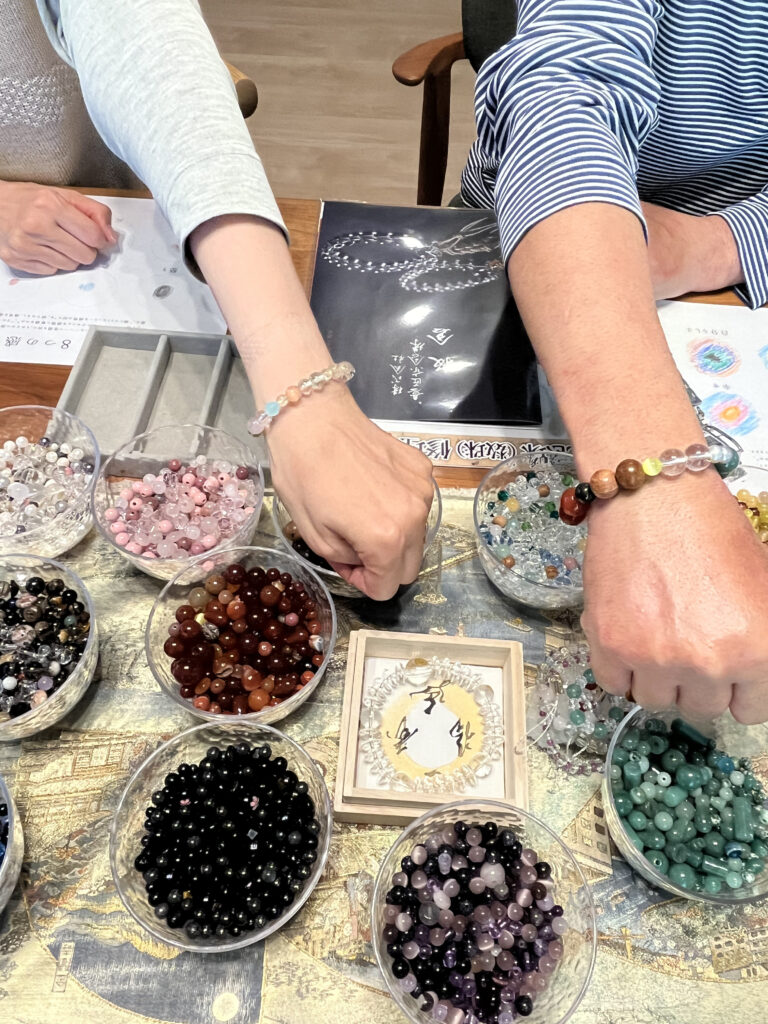 石の色やデザインを選びながら、あなただけの特別なお守り念珠を手作りできます✨